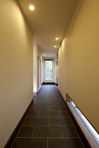 「通り土間」とは、玄関から土足で入れる廊下状の土間のことです。