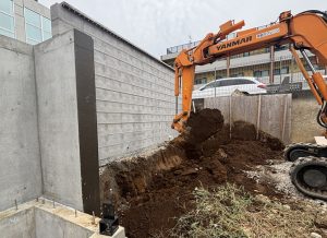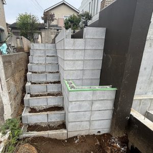 2025年10月3日 / 最終更新日時 : 2025年10月5日 hopes 高低差で視線をかわす。プライベートなテラスのある東京らしくない邸宅(2025.07着工) 外構工事 今週は一部外構工事を行いました。 木工事に向けて、 高地盤部と低地盤部を行き来し易くするため、外部階段のみ先に施工を行いました。 高低差が大きいため、土が崩れないよう土留めの役割も果たしております。 来週は基礎工事が全て終わり、木工事に入る予定です。 建方を行いますのでお楽しみにお待ちください。