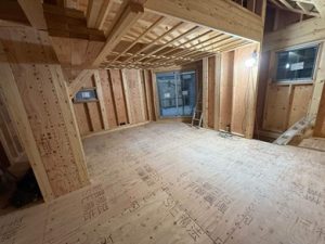 2025年10月25日 / 最終更新日時 : 2025年10月27日 hopes ホテルライクなエントランスホールと屋根バルコニーのある9坪の狭小住宅(2025.08着工) 窓取付・天井下地施工完了 今週は窓の取付と、天井下地の施工を行って参りました。 窓が取り付き、天井下地の施工が完了したことで、 空間の大きさや雰囲気が分かるようになりました! 来週は床材の施工を行う予定でございます。