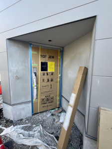 また、外部につきましては玄関周りのモルタル施工工事が完了し、
