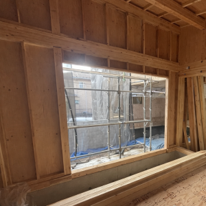 窓の大きさや位置に合わせて下地を組むため、精度が必要となる作業です。